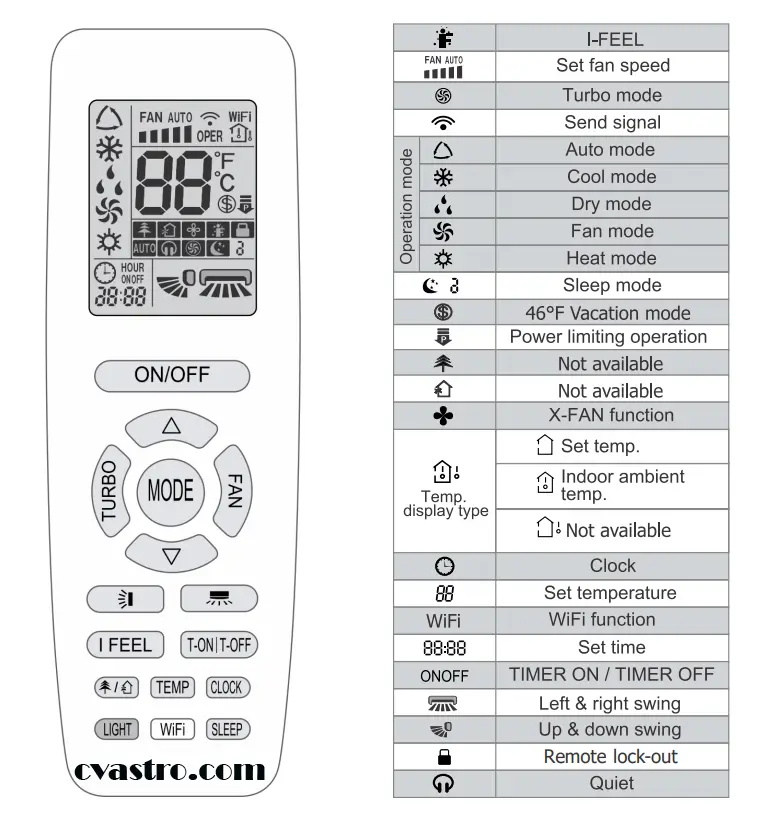 - Turbo meningkatkan kecepatan kipas dan kompresor untuk pendinginan/ pemanasan cepat.