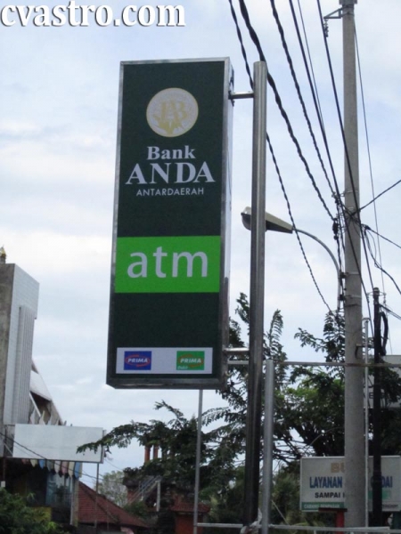 Menyambung postingan tentang pembuatan dan pemasangan casing ATM dan rumah ATM Bank Antardaerah Denpasar Bali, saat ini kami juga sudah selesai melakukan pekerjaan Pembuatan dan pemasangan Sign pole Neon Box Bank Antardaerah Denpasar Bali.